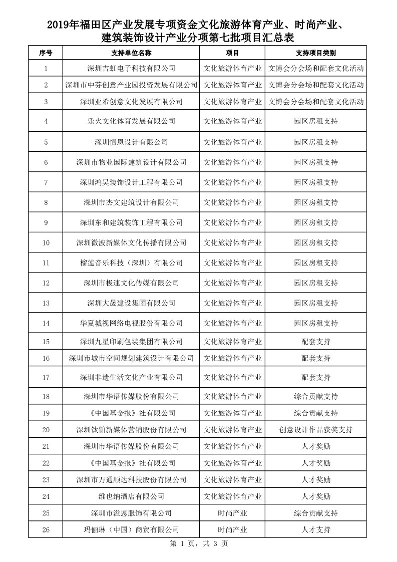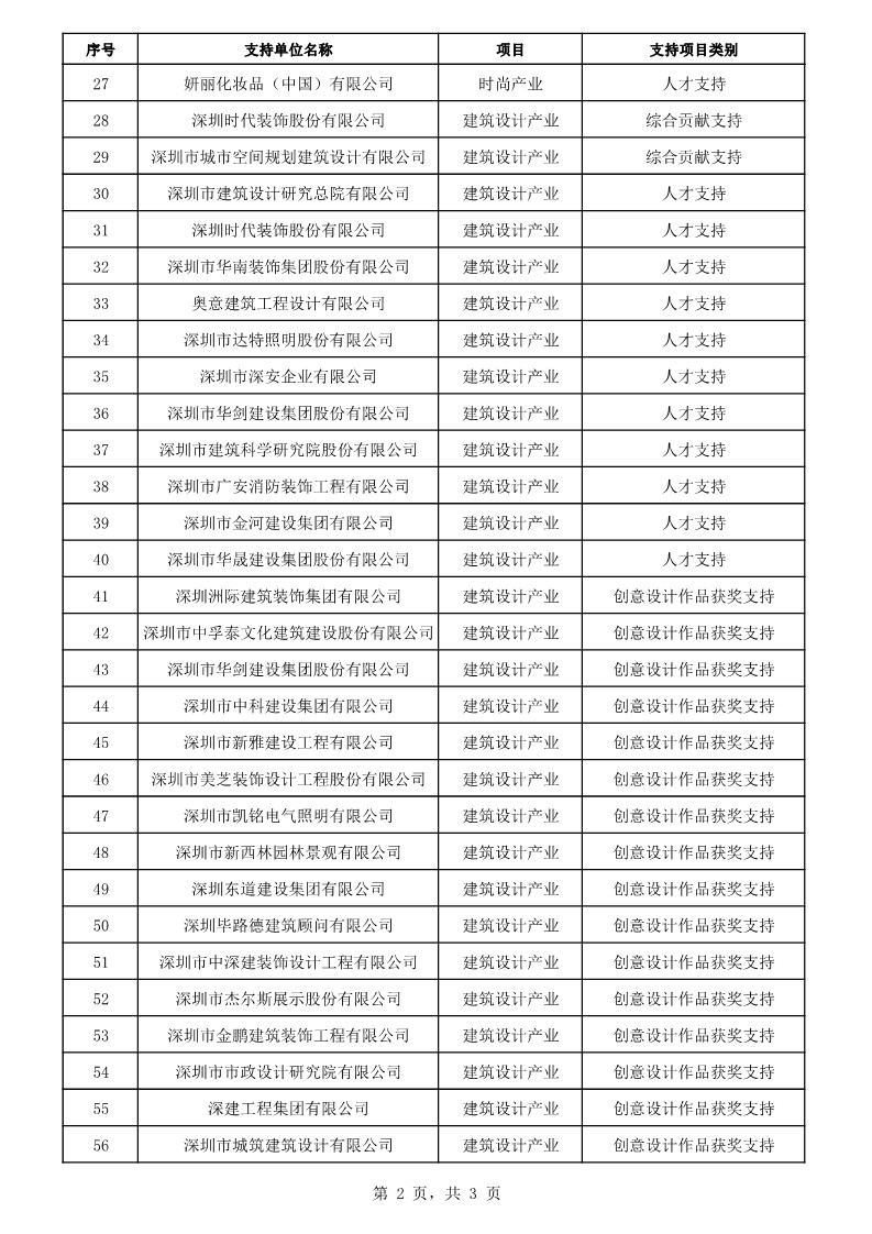 2020年3月24日,福田企服中心公布了2019年福田區(qū)產(chǎn)業(yè)發(fā)展專項資金文化旅游體育產(chǎn)業(yè)、時尚產(chǎn)業(yè)、建筑裝飾設計產(chǎn)業(yè)分項第七批支持企業(yè)及項目匯總表。其中,深圳市華南裝飾集團股份有限公司、深圳市華劍建設集團股份有限公司、深圳市廣安消防裝飾工程有限公司、深圳洲際建筑裝飾集團有限公司等建筑裝飾設計企業(yè)獲得該項資金支持,支持項目類別有:綜合貢獻支持、創(chuàng)意設計作品獲獎支持、人才支持、企業(yè)支持認定支持。