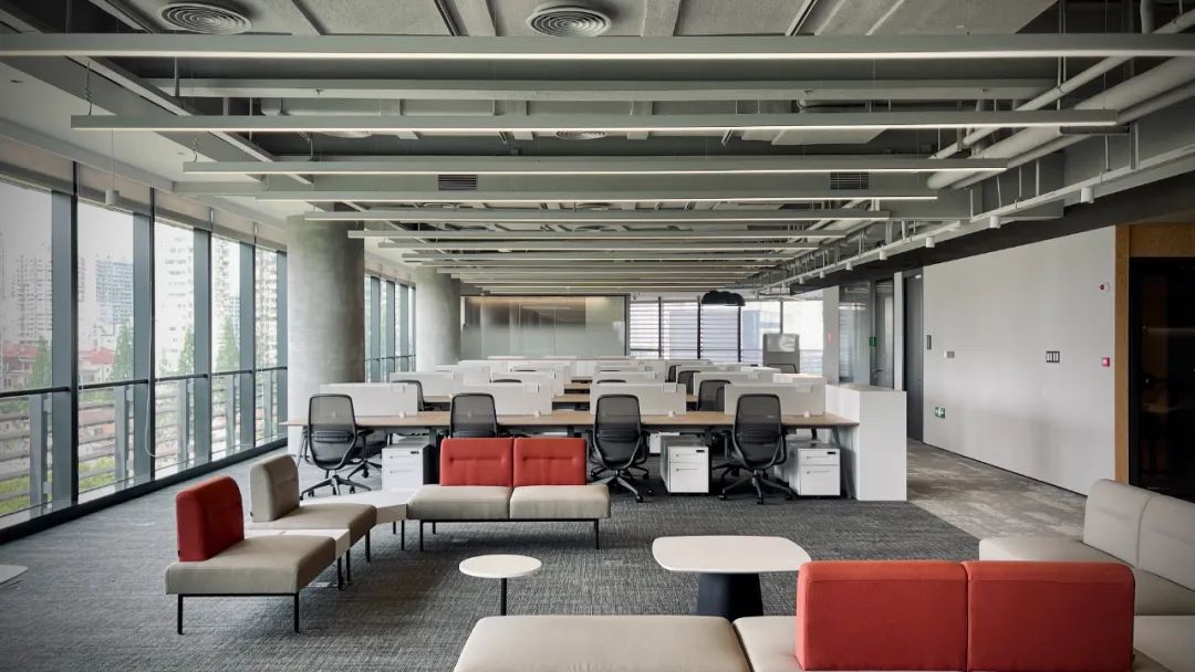 建議用加工地板取代稀釋混凝土、輕質(zhì)混凝土進(jìn)行回填,減輕樓板承重,方便改動(dòng);反復(fù)研討技術(shù)多次實(shí)驗(yàn),采用雙層龍骨夾石膏板、兩側(cè)再鋪巖棉,雙層隔音超白玻隔斷,隔音板到天花頂不留一點(diǎn)縫隙等措施,隔音降噪效果遠(yuǎn)超行業(yè)標(biāo)準(zhǔn);優(yōu)化供應(yīng)商,精選品質(zhì)燈具,從外觀、照度、舒適度三個(gè)維度深化設(shè)計(jì),使整個(gè)辦公樓呈現(xiàn)統(tǒng)一柔和照明效果。